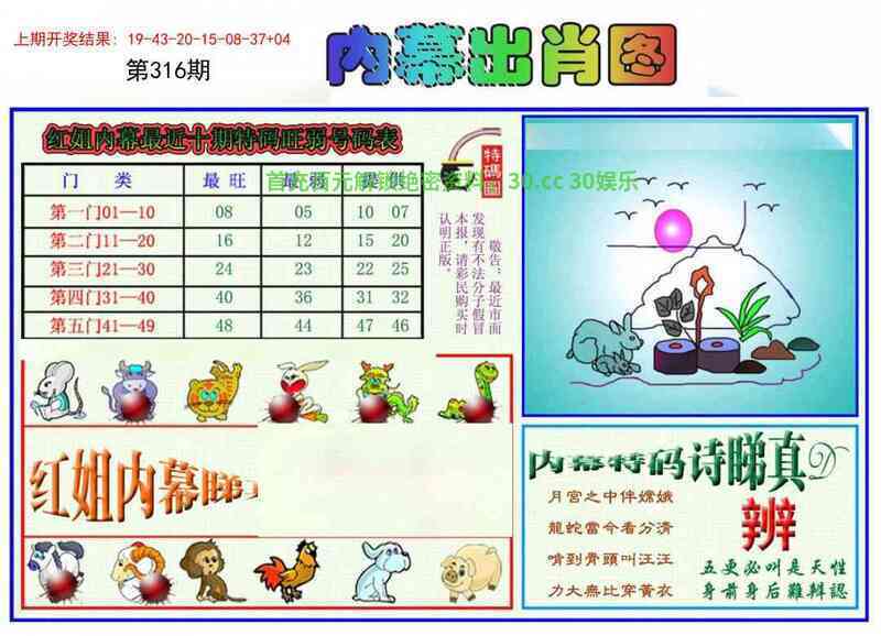 308期:天地两肖天肖+鸡鼠】开:兔39准